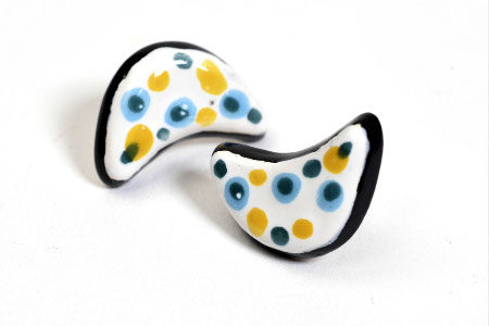 - Gli orecchini Luna sono in ceramica dipinti amano in Cile e la capiente borsa color anice di cotone è prodotta in Nepal.