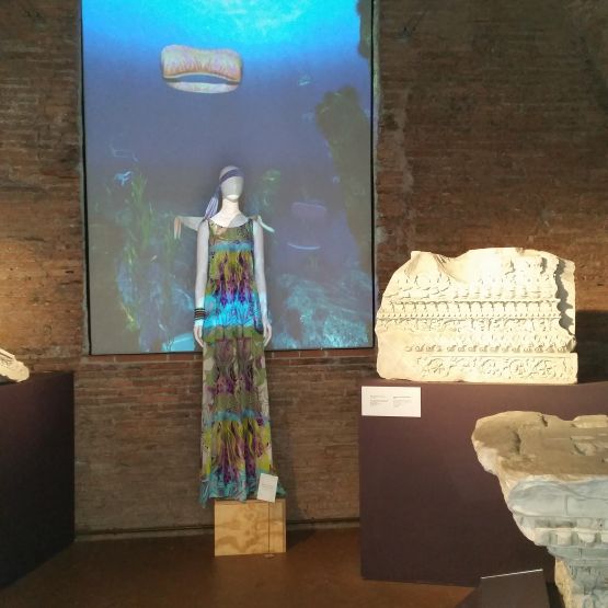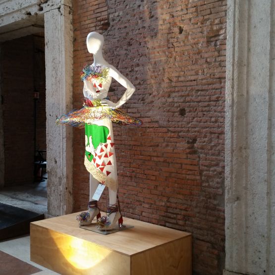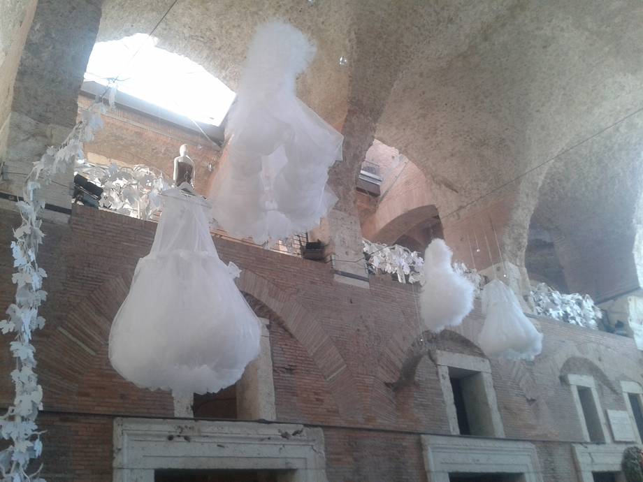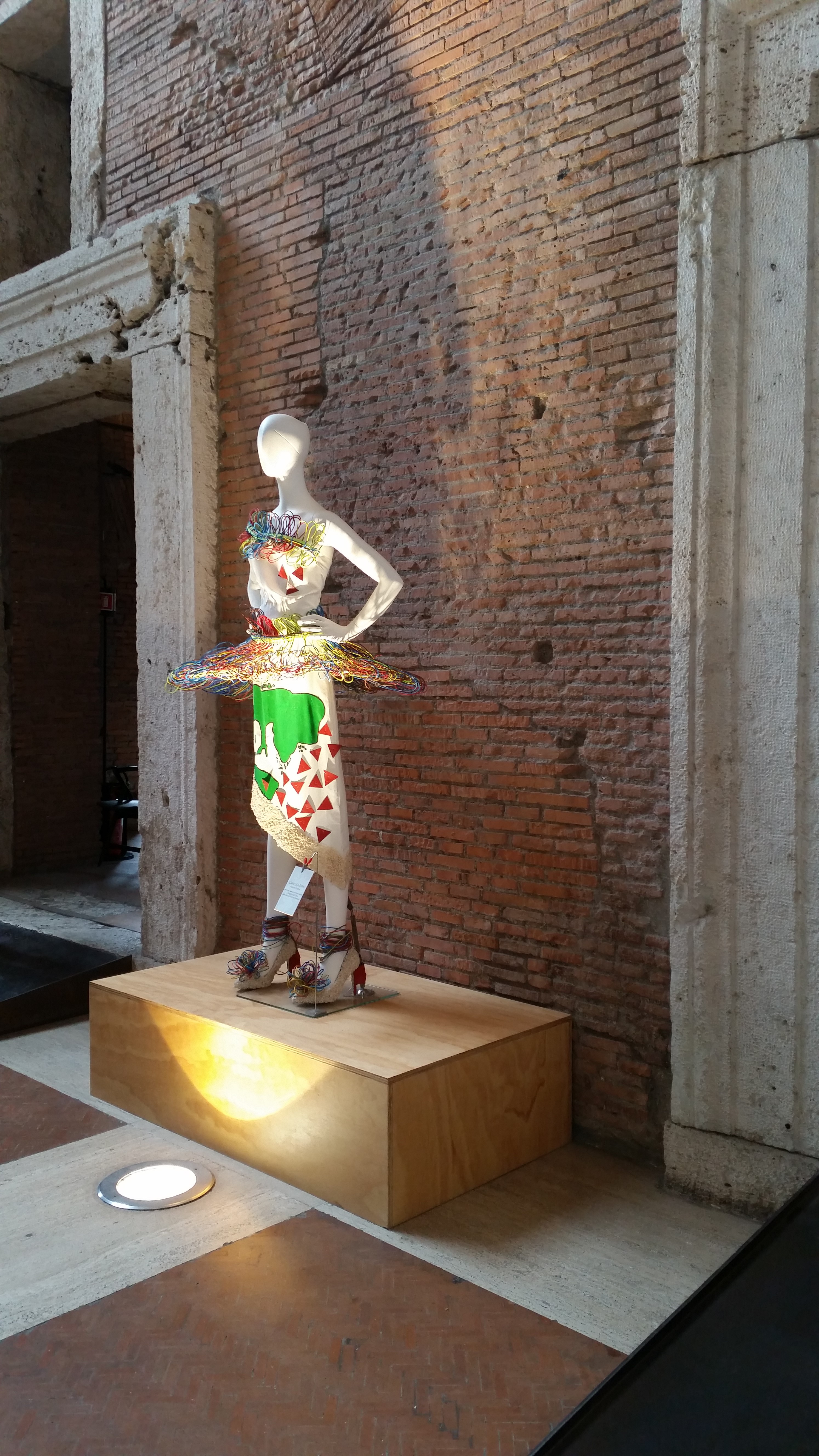 Il palcoscenico è quello del Museo dei Fori Imperiali ove ho trovato quasi poetico il contrasto tra l’antico e il moderno rappresentato da l’ accostamento tra l’asettico bianco dei calchi e i colori e le stravaganze della moda.