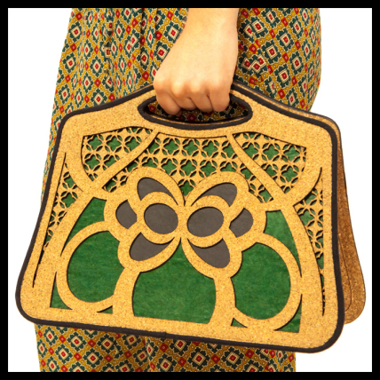Materiali utilizzati: fibra di cellulosa e sughero, sia riciclato da vecchie lavorazioni, sia naturale. Il sughero infatti si autogenera, questo permette alla raccolta di non arrecare danni alla pianta e alla natura.